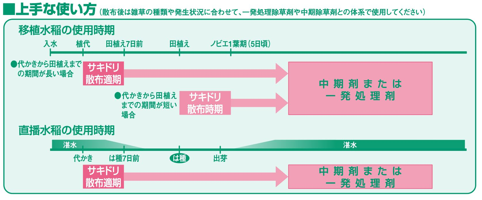 | 植代時(移植7日前まで) | 植代時に原液のまま散布し混和する | ||||||