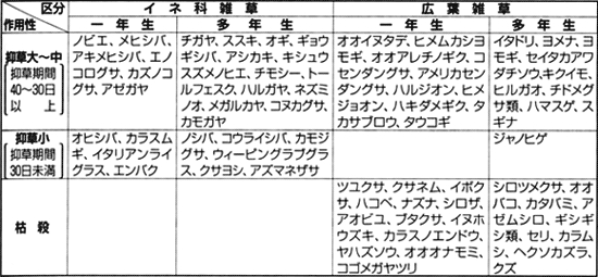 [各種雑草に対する作用性]