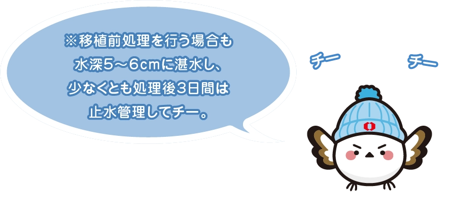 植代後~田植7日前までの使用で幅広い雑草の初期発生を予防