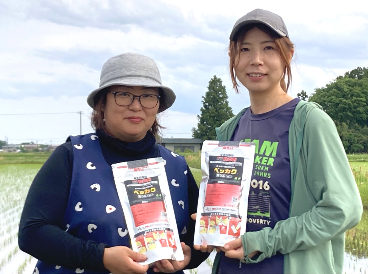 お二人は数年来、弊社の豆つぶ除草剤を使用されており、高評価をいただいております。