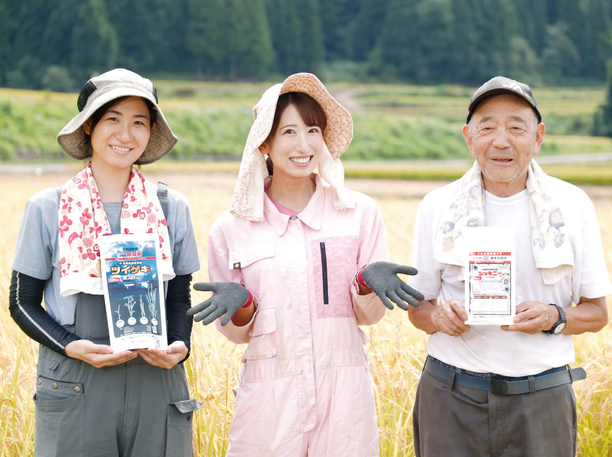 「普通の粒剤は撒きムラができやすいのですが、豆つぶ剤は水面で拡散して田んぼ全体に広がります。初心者でも扱いやすく、撒くのがどんどん楽しくなるんです。鯉にエサをあげるような感覚でした」