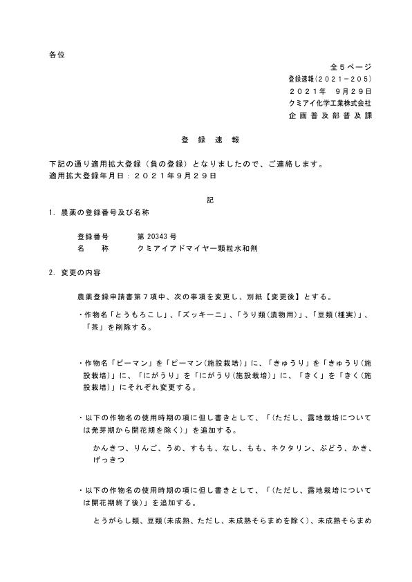 | 登録番号 | 第20343号 [クミアイ化学工業㈱ 登録] |