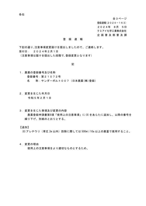 | 登録番号 | 第21072号 [日本農薬㈱ 登録] |